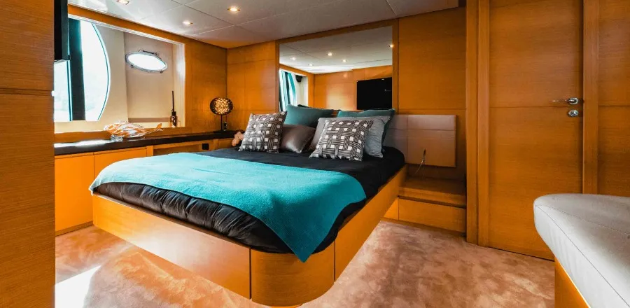Montez à bord du Pershing 64 et découvrez son luxe raffiné. Le pont spacieux offre un espace idéal pour se détendre au soleil ou se divertir avec des amis et de la famille. À l'intérieur, l'ambiance est à la fois élégante et confortable, avec des matériaux de haute qualité et des finitions impeccables.